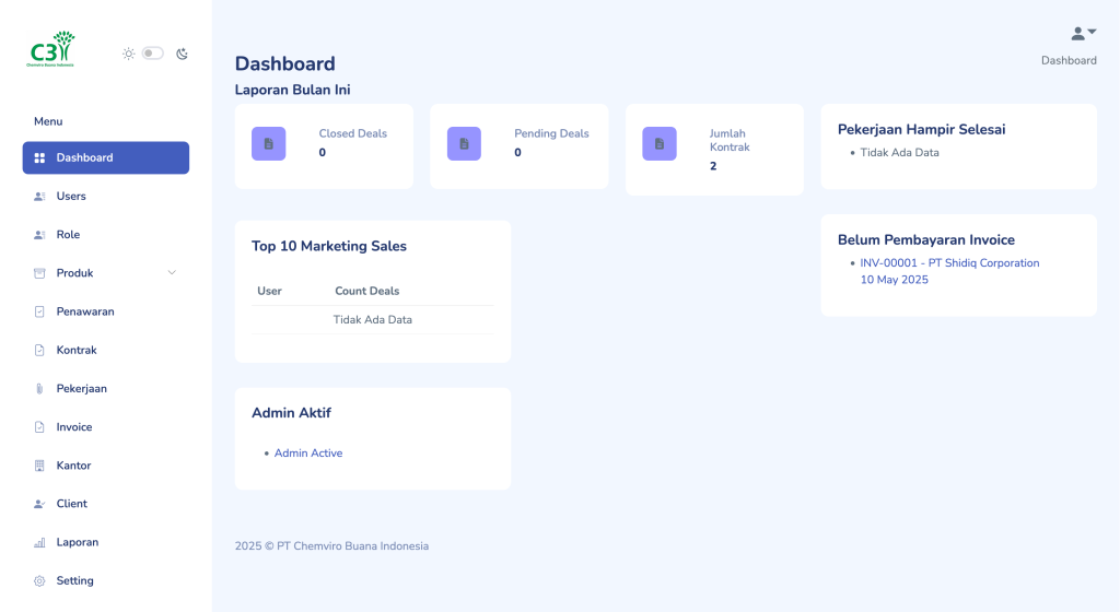 Tampilan menu dashboard yang ditampilkan akan menyesuaikan jabatan.