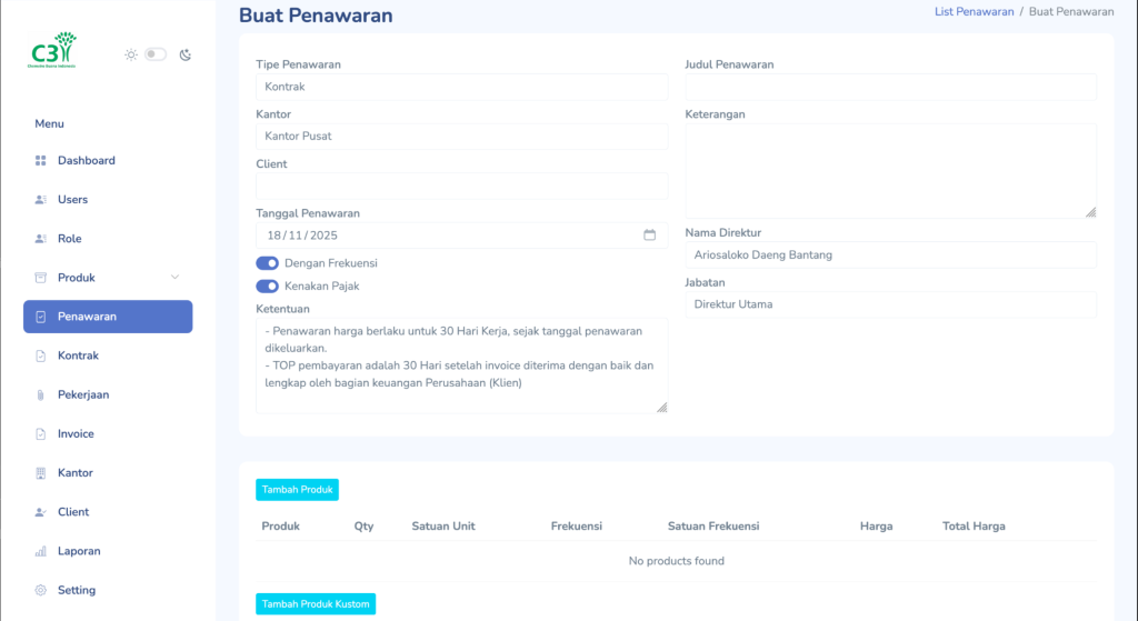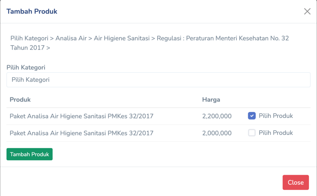- Klik tombol “Tambah Produk” untuk memasukkannya ke daftar penawaran